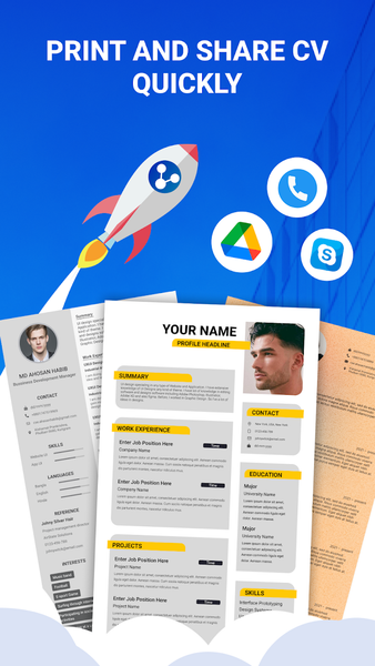 - Fast Sharing: Share your CV resume instantly via all networks with CV creator