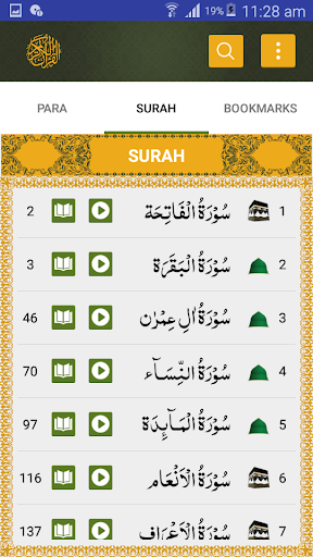 • Separate icon indexing is used for both Makki and Madani Surahs.