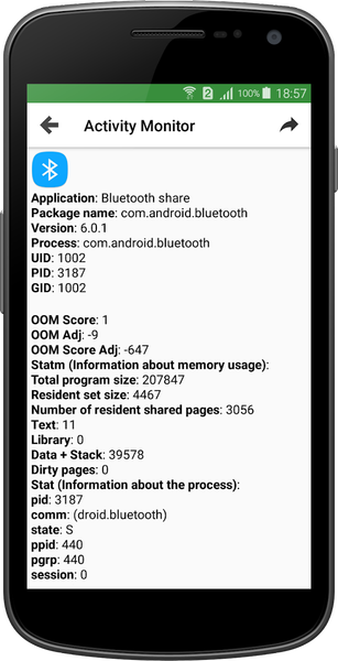 As the name suggests, is a clean and simple activity monitoring app for your device. It graphically shows usages of various system components and resources. Activity Monitor shows the processes that are running on your Android device, so you can manage them and see how they affect your device activity and performance.