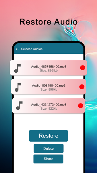 Your audio files can be easily found and restored from your device and SD storage.