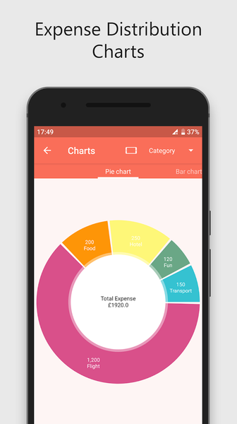 • Category/Person/Date wise Pie Chart & Bar Chart to analyze expense.