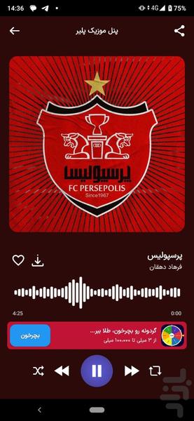 عاشق پرسپولیس، تیم افسانه‌ای سرخ‌پوشان پایتخت؟ 💪 این اپلیکیشن برای توئه! 🎉 با آهنگ‌های پرسپولیسی پرشور و حماسی، از سرودهای استادیومی 🏟️ تا ترانه‌های عاشقانه‌ی هواداری 🔥، عشقت به پرسپولیس رو هر لحظه زنده کن! 🎶