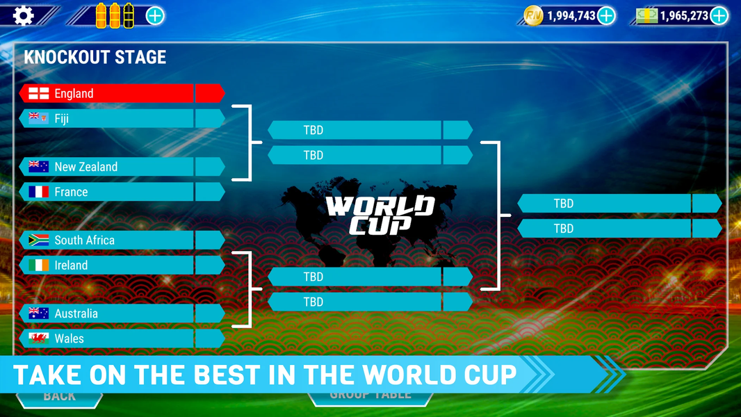 Choose your favourite Nation and challenge the best in the World Cup game mode. Pick from the best teams around the globe. Who will you choose? New Zealand, Wales, Japan.. you’ll find them all here!