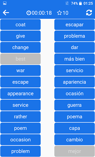 A quick dictionary, effective translation, irregular verbs, frequently used phrase sentences, tests and games... Everything you need to learn Spanish quickly...
