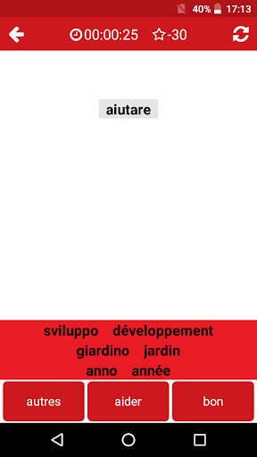A quick dictionary, effective translation, frequently used phrase sentences, tests and games... Everything you need to learn French/Italian quickly...