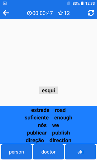 A quick dictionary, effective translation, irregular verbs, frequently used phrase sentences, tests and games... Everything you need to learn Portuguese quickly...