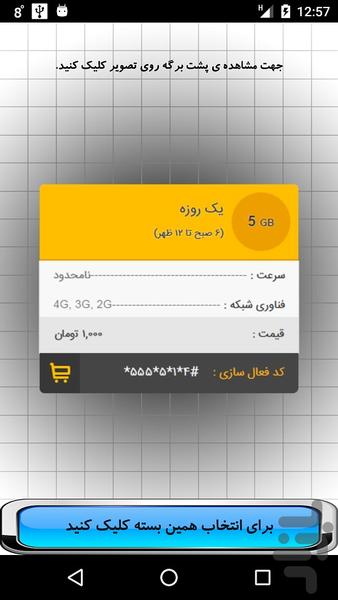 در این نرم افزار شما میتوانید بسته های اینترنتی به صرفه از لحاظ هزینه را مشاهده و انتخاب کنید.