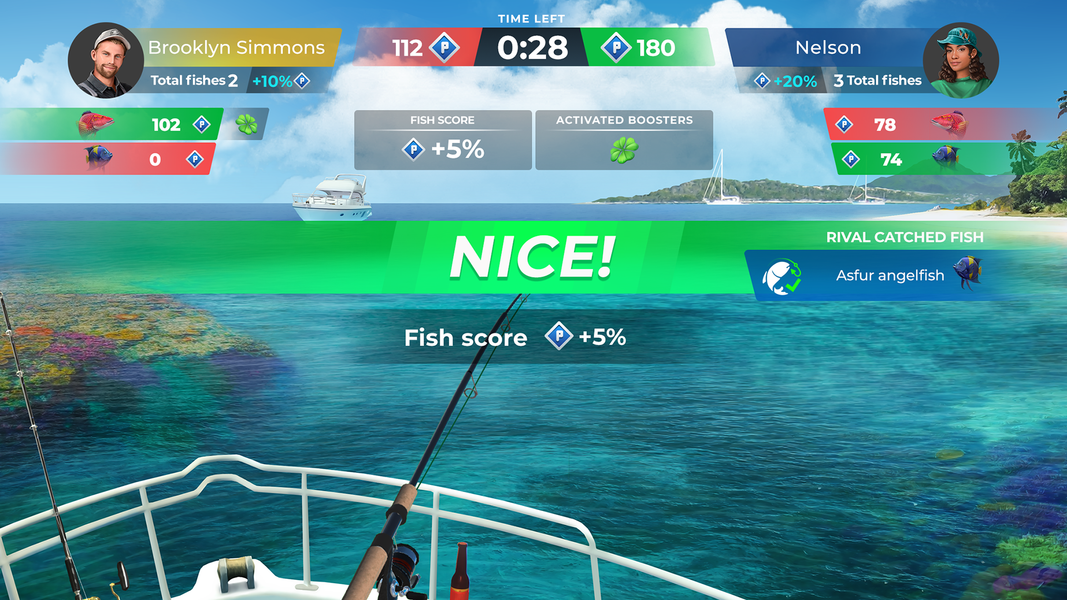 Fishing Rival features 1v1 PvP duels, where you could become the best fisherman if you’ll be able to catch the biggest fish with your fishing lure.