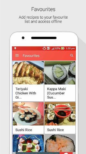 Japanese food tends to be low in fat, and these stylish sushi rolls are no exception. You must use sushi rice, which is sticky when cooked, for the best results. Homemade Sushi is so much cheaper than at the restaurant. It is easy and fun to make at home, and you can put all your favorite ingredients into your perfect custom roll. The app offers different kinds of sushi you will love to make. Enjoy healthy and authentic Japanese cuisines from our app.
