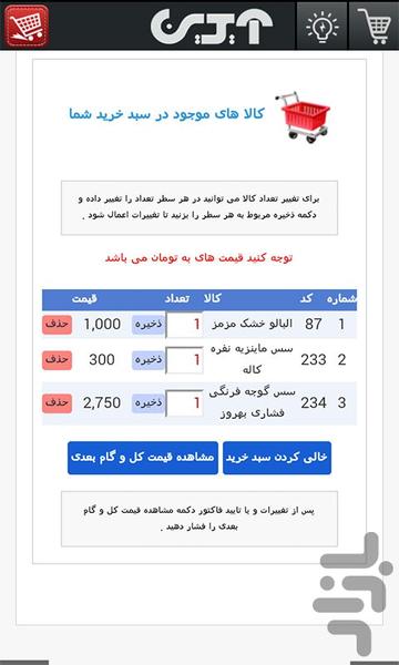 این نرم افزار برای خرید اینترنتی از فروشگاه مواد غذایی آیدین مارکت در شهرستان فیروزکوه طراحی شده است که با استفاده از این نرم افزار راحتتر می توانید از فروشگاه ما خرید نمایید.