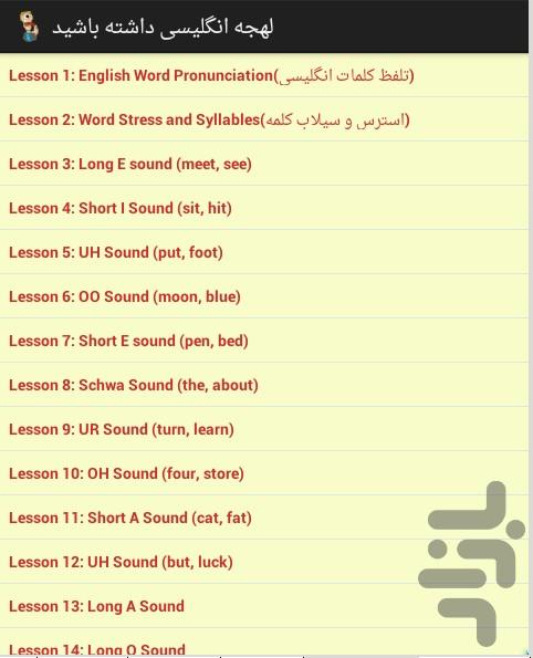 تو این برنامه آموزشی شما یک آموزش گام به گام ویژه دارید ، که به شما کمک میکنه تفاوت تلفظ حرف انگلیسی رو یاد میده و بعد از این آموزشها و تمرین کردن آنها شما دیگه آدم قبلی نیستید و یه لهجه خوب انگلیسی رو دارید.