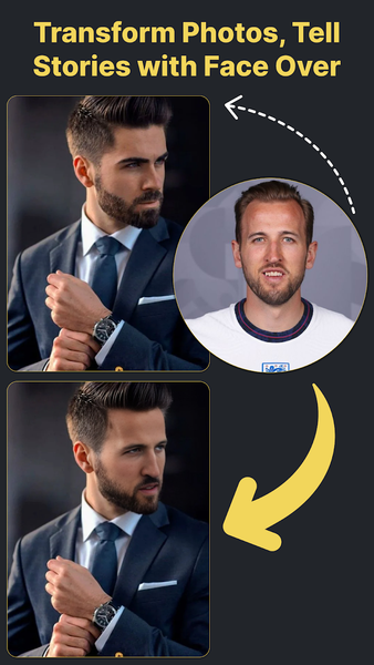 Download Face Over now and redefine your photos with the magic of AI. Transform faces, tell stories, and share the fun with Face Over: AI Face Swap Photo.