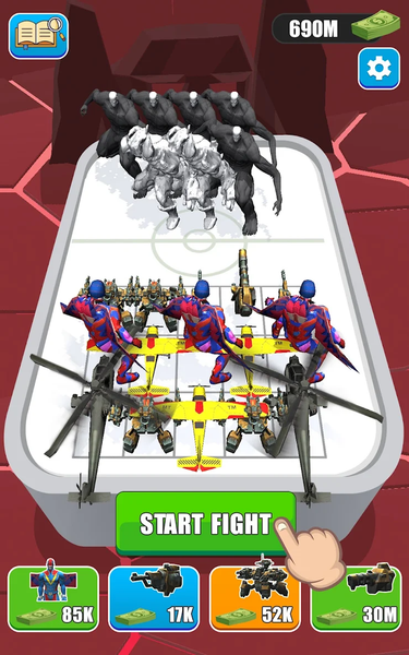 Grow your warriors and superheroes from simple soldiers and velociraptors to terrific enemies when you merge them. The higher the level of the superheroes, the stronger the attack and defense. This is the most important skill in this game, let's master it.