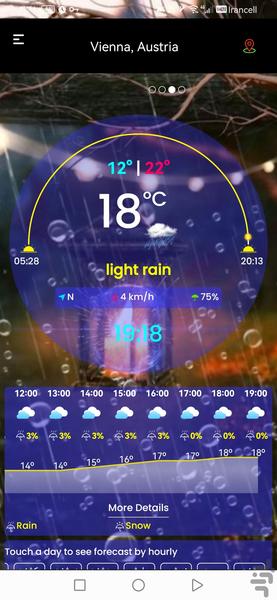 با استفاده از این اپلیکیشن می توانید به راحتی شرایط آب و هوایی را بررسی کرده و بر اساس آن روز خود را برنامه ریزی کنید. همچنین میتوانید گزارشهای دقیق آبوهوا را برای ساعتها یا روزهای آینده ببینید، بنابراین همیشه میدانید چه انتظاری دارید.