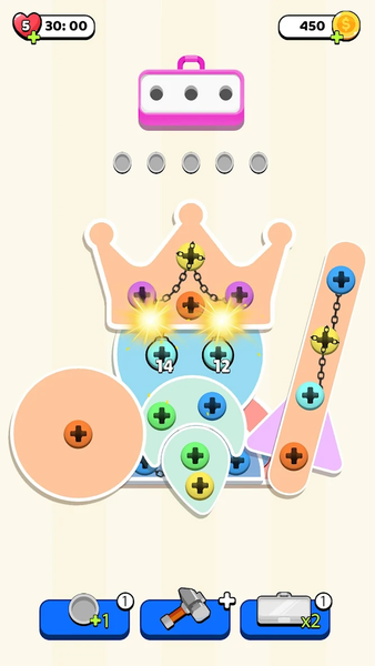 As you progress through the levels, the puzzles become more complex, requiring precise timing and logical thinking. Match the removed screws with their corresponding positions to successfully complete each level and advance to the next challenge.