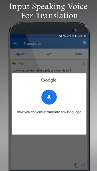 Speak and Translate offline is a useful mobile phone app for users who frequently need of translation and meaning of natural languages (Daily life language). This app promptly will listen to your voice and will translate it into the desired language. The app is also able to extract text from the image (image contain text) and then translate, the core feature of the app is to help you to communicate with other regions of the world and improve your multi-language learning skills. The app is also working as a dictionary you can translate any word, phrase, sentences, and paragraphs. The app will provide a simple user interface for users who are not experts in technologies or computer knowledge.