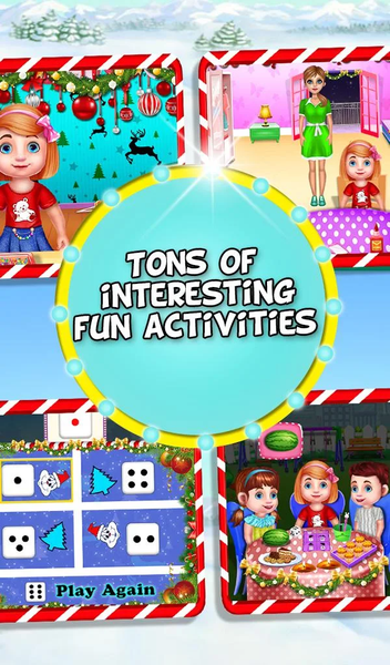Here in this Christmas Slacking game, Emma was waiting for her presents from Santa and she wants to catch him. Let's help Emma in this Christmas game enjoy the festival by completing lots of interesting levels. Collect the gifts, doctorate the Christmas tree, put the gifts at correct shocks, select the fun book, design gift, decorate the area & make arrangements for the Christmas Party, Make the popcorn, clean the backyard using your cleaning skills and much more. The beautiful game combined with engaging activities both children and their parents. Play this Christmas holiday game with tons of fun & educational activities.