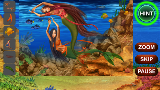 Mermaid Hidden Objects is most beautiful hidden object game. Enjoy cute scenes with mermaids, ocean, underwater animals and scenes. Find treasure, jewels, corrals, seashells and much other mysterious items. You goal is to find series of hidden objects on each level. Use Hint and Zoom buttons to find items quickly. If you can not complete any level you can simple skip it and try to complete it later. Completed levels will be unlocked and you can replay them with different hidden objects set. When you complete the game press More Games button to install more hidden object games.