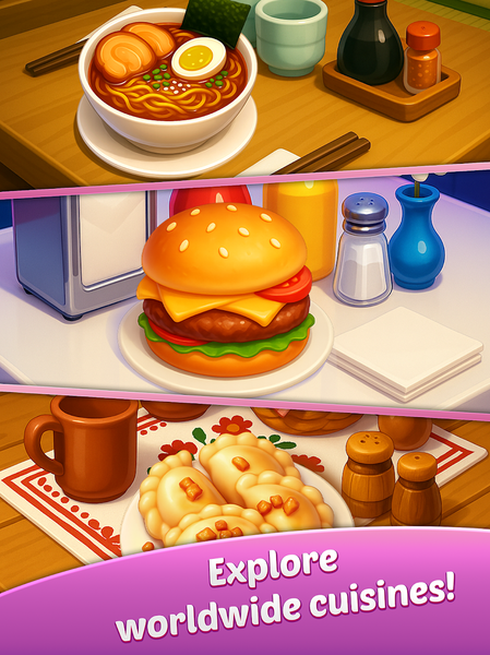 Embark on a thrilling cooking quest where you'll unlock mouth-watering dishes from all over the world. Discover secret ingredients, master legendary recipes, and cook your way to the top of the restaurant arena! Whether you're flipping burgers in burger fever mode or rushing to satisfy a room full of hungry guests, the pressure is always on!
