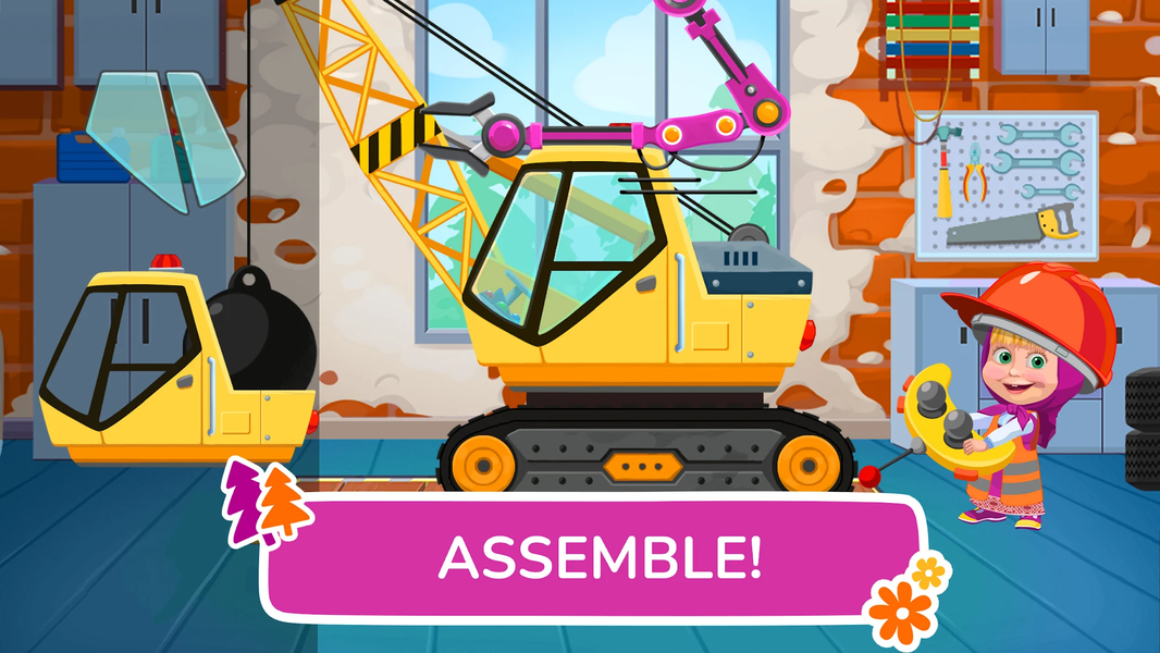 Educational games for kids 4 5 years old with popular and beloved cartoon characters train kids’ memory, fine motor skills and communication skills. Children will easily learn the names and types of different building cars and processes at a construction site! Masha won’t let you get bored in these building games for girls :)