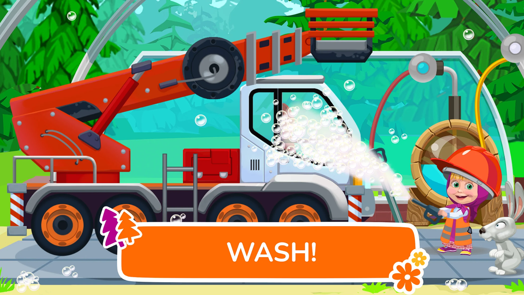 Fun kids games no wifi contain various stages of interaction with transport. Watch funny action scenes where Masha manages building equipment and her colleagues - forest animals! After working you need to wash the cars - the Hare will definitely visit you to check the cleanliness. We wash all bulldozers and trucks with soap, foam and bubbles! A real car wash for little ones! You will also fix cars like a real mechanic. If repairs are needed then the Wolves with tools know their business and Masha herself will operate the cradle on cables to provide a full car service perfectly.