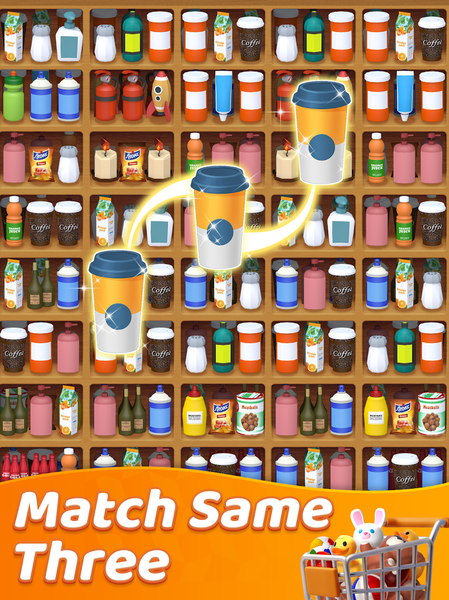 Triple Match Goods is a unique match-3 game! Sort snacks, drinks, and fruits in 3D fashion. Simply drag similar items to match them on the shelves.