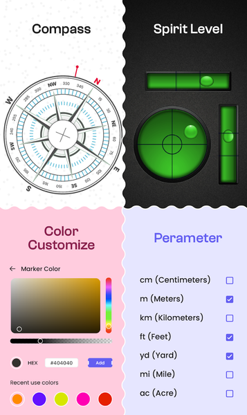 In gps fields area measurement, you can easily add and adjust markers on the map. And with GPS distance & area measurement, you can record your current GPS position and measure area or distance on google map by simply moving around the location. This feature makes measuring distance and area easier and accurate without the need to manually specify your location.