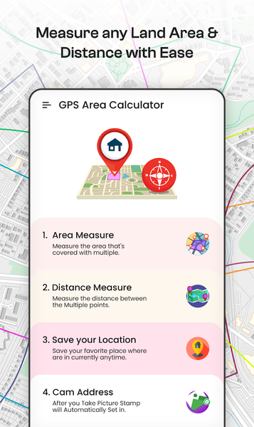 This gps land area calculator app measure & calculate with two key measurement options: 1) Area calculator for land by walking 2) GPS distance measurement for walking