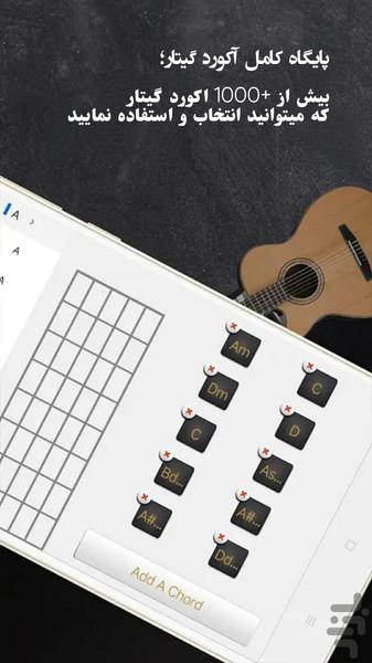 2. انتخاب آکورد : انتخاب تا 7 آکورد گیتار در صفحه اصلی گیتار ؛