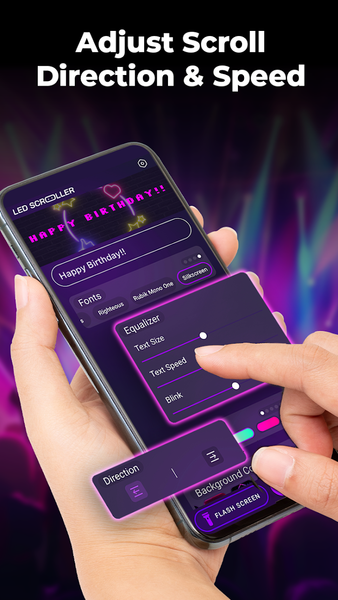 There are various fonts for scrolling text for you to choose from LED Banner - LED Scroller app. Easily adjust the text size to make your LED message big or small according to your needs and preferences.