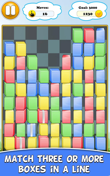 Play an awesome game. Swap and match 3 or more boxes in a line to make them blast. Hundreds of exciting levels! It can keep you entertained for hours. The further you advance, the more challenging the levels will become.