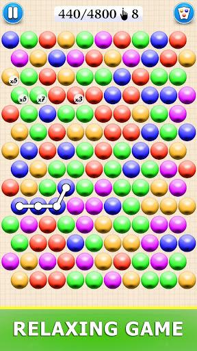 Connect bubbles one by one by moving your finger across the screen to make them disappear. Form groups of three or more neighboring bubbles of the same color to bust them. The bigger the group the bigger the score you obtain.