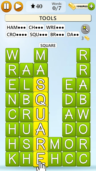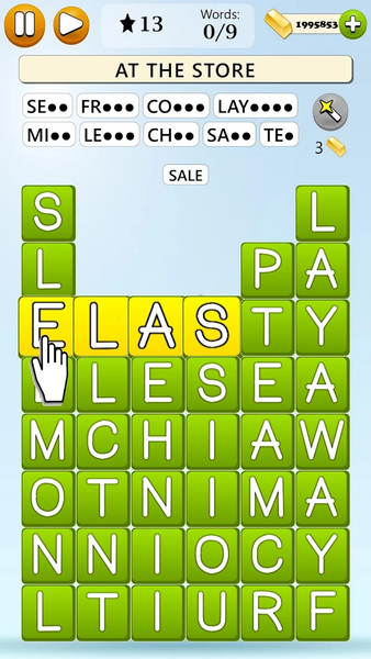 You find words and pop them with one swipe. Words are placed either vertically or horizontally. Finding words is easy when you use the hint and starting letters. When you pop all the letters you win the game. The game gets easier as you find more and more words.