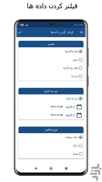 • فیلتر کردن داده ها بر اساس زمان، دسته بندی، نحوه پرداخت و ...