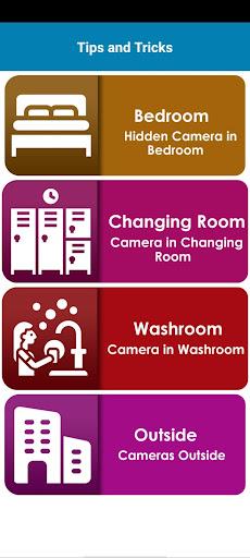 The other section of this app contains the tips foryour safty some bad people have placed secret camera secretly in private places like bathroom