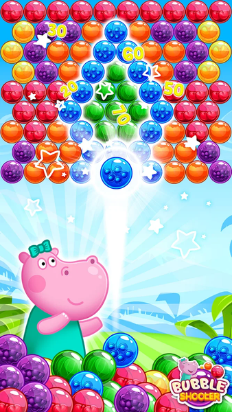 If you like simple and funny games, try to pop bubbles with Hippo. Let’s play this classical bubble shooter together! Pop colorful balls and make your results better every time you play. It is impossible to stop till one balloon is left. Various levels and unexpected tasks will be interesting for both boys and girls and for their parents as well. Everybody would like to become the most skillful shooter. There are a lot of colorful balloons for everybody.
