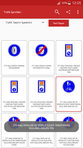 The Traffic Signs are presented to you in 5 groups and you can access the traffic signs in the related area directly from the menu.