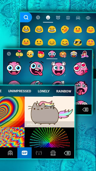 * Enjoy Blue Galaxy Mandala Keyboard Theme with cute emoji and delicate fonts.