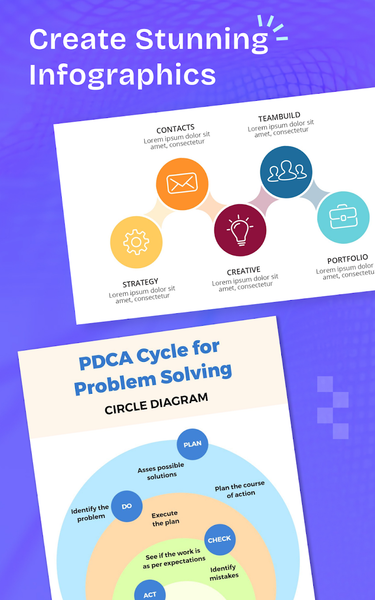 Create stunning infographics, timelines, mindmaps, and flowcharts with ease using the infographic maker app.