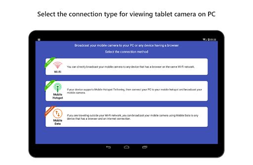 • Start broadcasting camera preview on application launch.