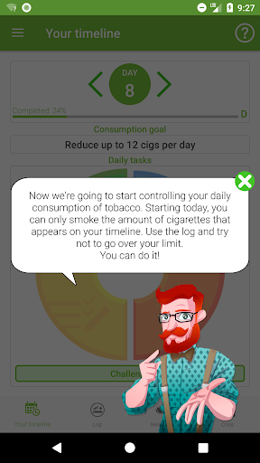 The daily tasks will help you to gradually change your smoking habits and eliminate the mental barriers that prevent you from taking the step to quit.