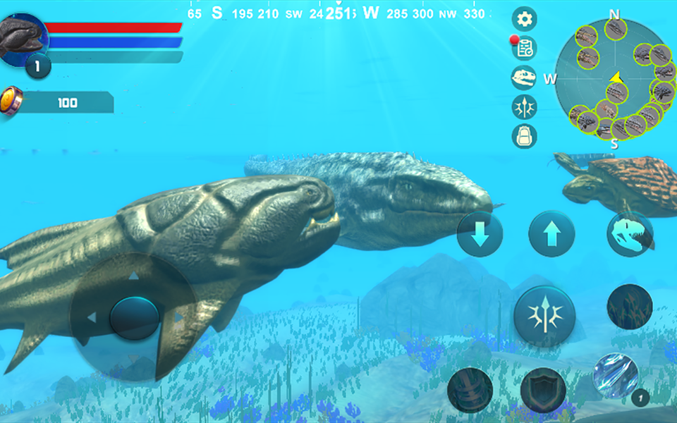 Maintain your health and energy by eating dinos and drinking water, explore massive world, fight other dinosaurs to become more powerful