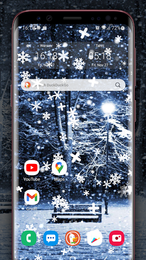 You can run a winter simulation as a live wallpaper or / and display it in the foreground of the screen of your phone.