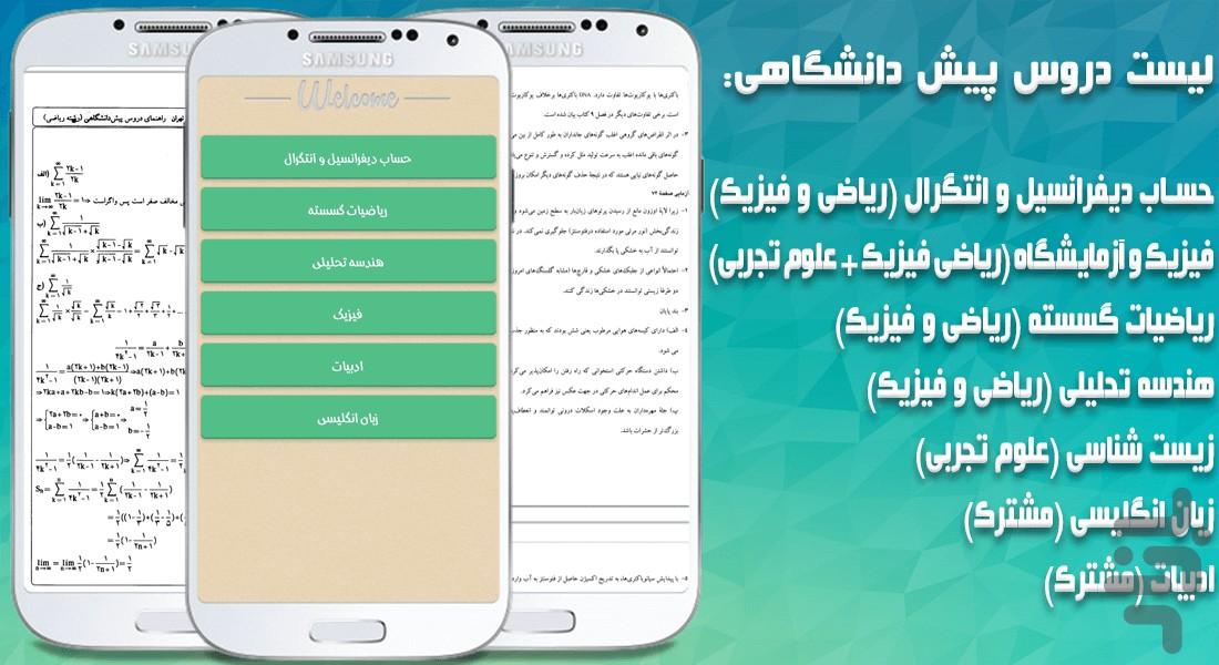 کتاب های پایه پیش دانشگاهی: حساب دیفرانسیل و انتگرال (ریاضی و فیزیک) - فیزیک و آزمایشگاه (ریاضی فیزیک+علوم تجربی) - ریاضیات گسسته (ریاضی و فیزیک) - هندسه تحلیلی (ریاضی و فیزیک) - زیست شناسی (علوم تجربی) - ادبیات (مشترک) - زبان انگلیسی (مشترک)