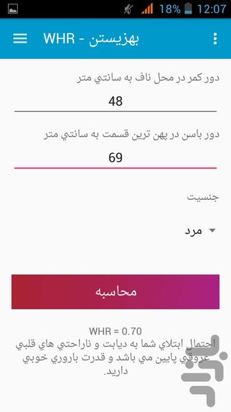 برای اندازهگیری این نسبت، محیط دور مفصل ران که از پهنترین قسمت باسن عبور می کند و محیط دور کمر که باریکترین قسمت کمر است، اندازهگیری شده و دور کمر بر باسن تقسیم تقسیم میشود.