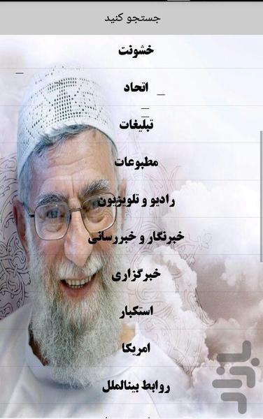 مجموعه حاضر با مجوز رسمی از مرکز توسعه فن آوری اطلاعات و رسانه های دیجیتال، با ظاهری زیبا ومتفاوت شامل بیانات کوتاه وشنیدنی رهبرمعظم انقلاب اسلامی در زمینه های مختلف و همچنین خلاصه ای از زندگینامه گهربارایشان می باشد که تقدیم می گردد به تمام عاشقان و رهروان ولایت.