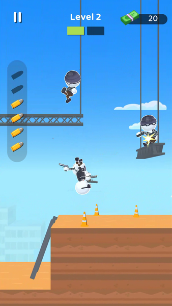 Run and gun in hyper-casual style in this addicting bullet time shooter game!