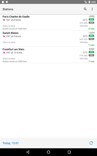 AeroWeather provides quick and intuitive access to METAR and TAF for airports worldwide. Data can be shown in its original (raw) format or as fully decoded and easy understandable texts. AeroWeather is helpful for weather preflight-briefings, but also to just get very precise weather. All weather data is cached for offline access. There are many settings for units and format of METAR/TAF available.