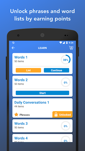- Earn points by learning and practicing. Then unlock phrases and word lists.