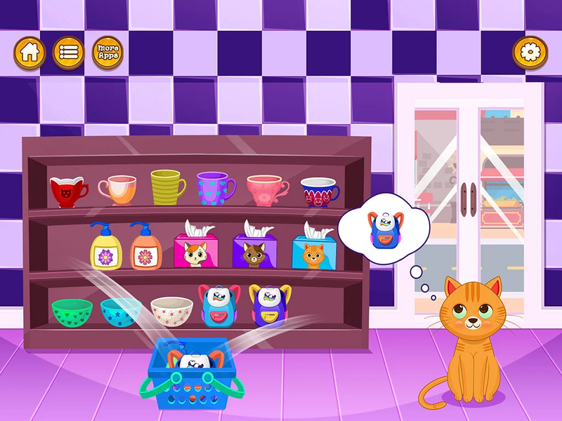 Don't forget to check kitty' s condition in between your chores. Go through indicated icons to know and fulfill her needs.